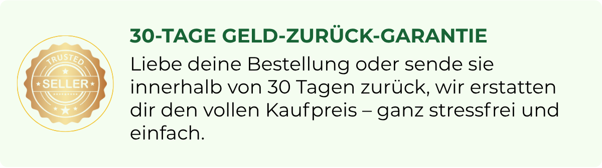 Wir von UNAMULI sind davon überzeugt, dass Du von Deinem Kauferlebnis begeistert sein wirst. Solltest Du jedoch nicht zufrieden sein, kannst Du den Artikel innerhalb von 30 Tagen nach Erhalt zurücksenden und wir erstatten Dir den vollen Kaufpreis!